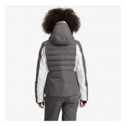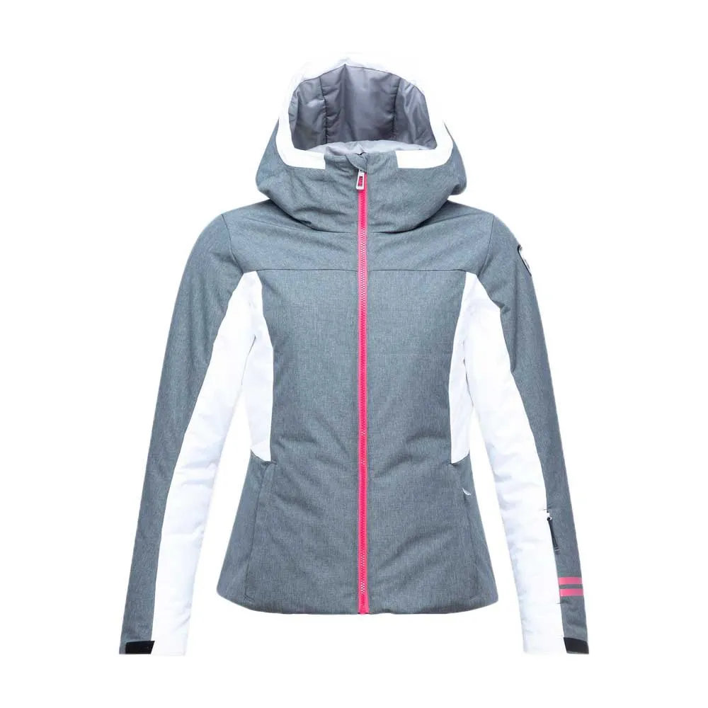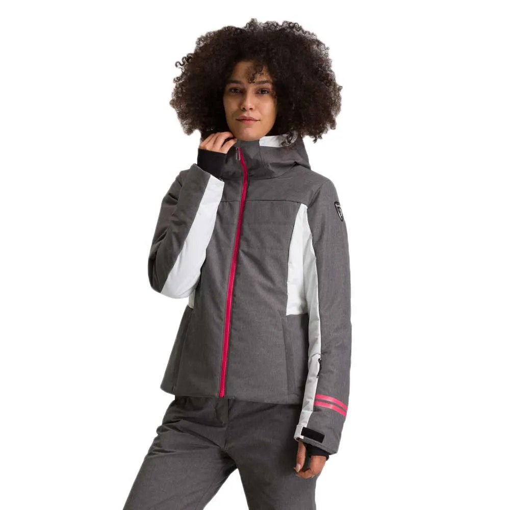 Warm and cozy makes the day. Carve the piste and explore untracked aspen glades in the women´s Courbe Heather Ski Jacket. A combination of high-loft synthetic insulation in the body and low-bulk synthetic fill in the sleeves provides premium warmth and easy mobility, while zip vents let you regulate your temperature as needed. The waterproof, breathable design adds sealed seams for maximum storm protection. Features like stretch cuffs with thumb loops, a dedicated pass pocket and a built-in powder skirt ensure all-day comfort on the mountain. The hood is removable, so you can personalize your style to meet the conditions. Design details include contrasting heather panels and ski track-inspired stripes on the sleeves. A signature rooster logo patch reflects Rossignol´s alpine legacy.