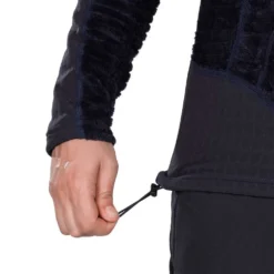 Fixed hood with elastic adjustment. Flatlock seams (4 needles). Longitudinal zip. Fitted elastic hem. Zip front pockets.